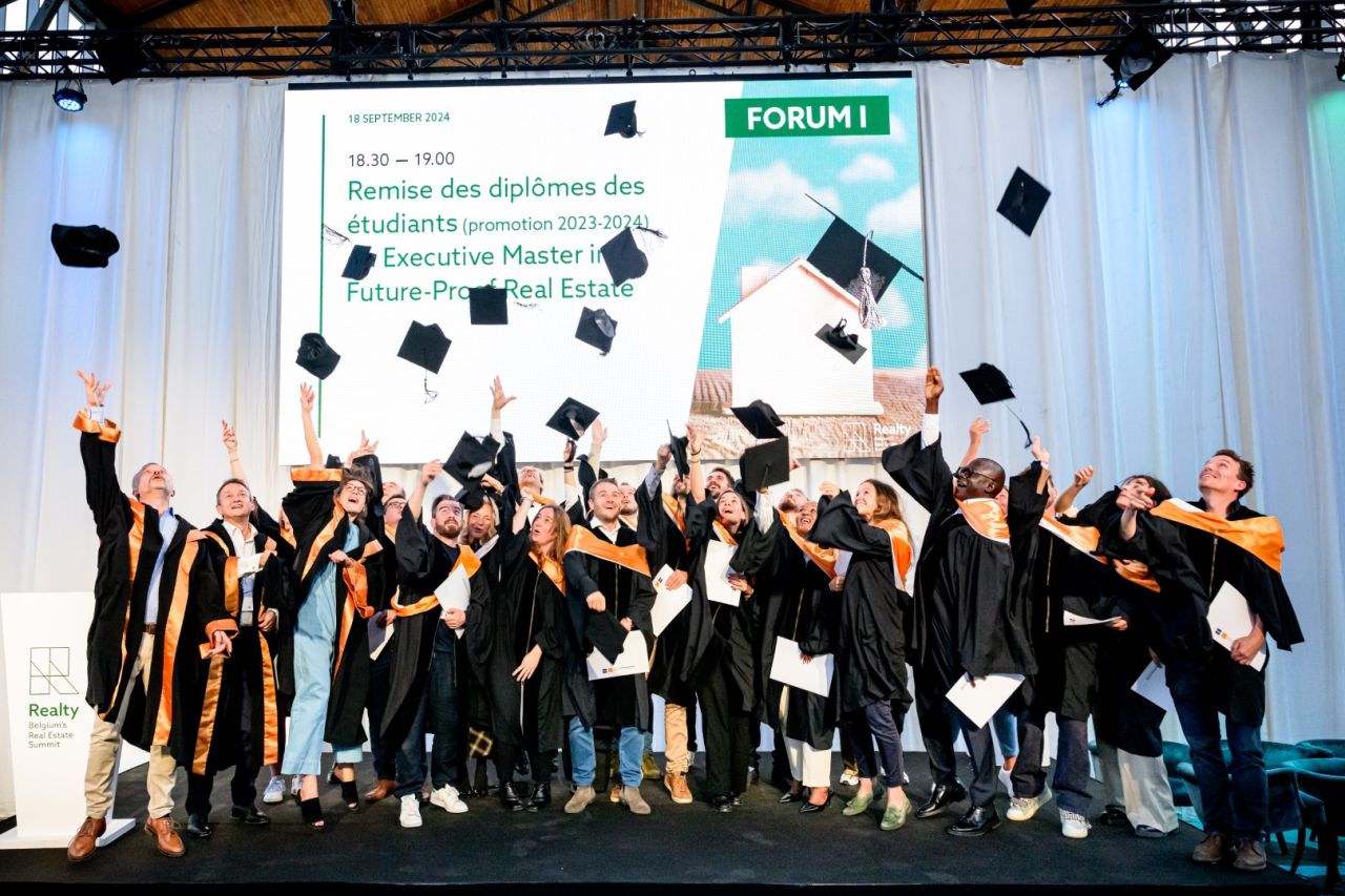 La cérémonie de remise des diplômes de l’EMFPRE (Executive Master in Future-Proof Real Estate) s’est déroulée lors du salon immobilier Realty Belgium, où une nouvelle promotion de professionnels de l’immobilier a reçu son diplôme. Félicitations aux diplômés qui sont maintenant équipés pour relever les défis futurs de l’industrie immobilière.